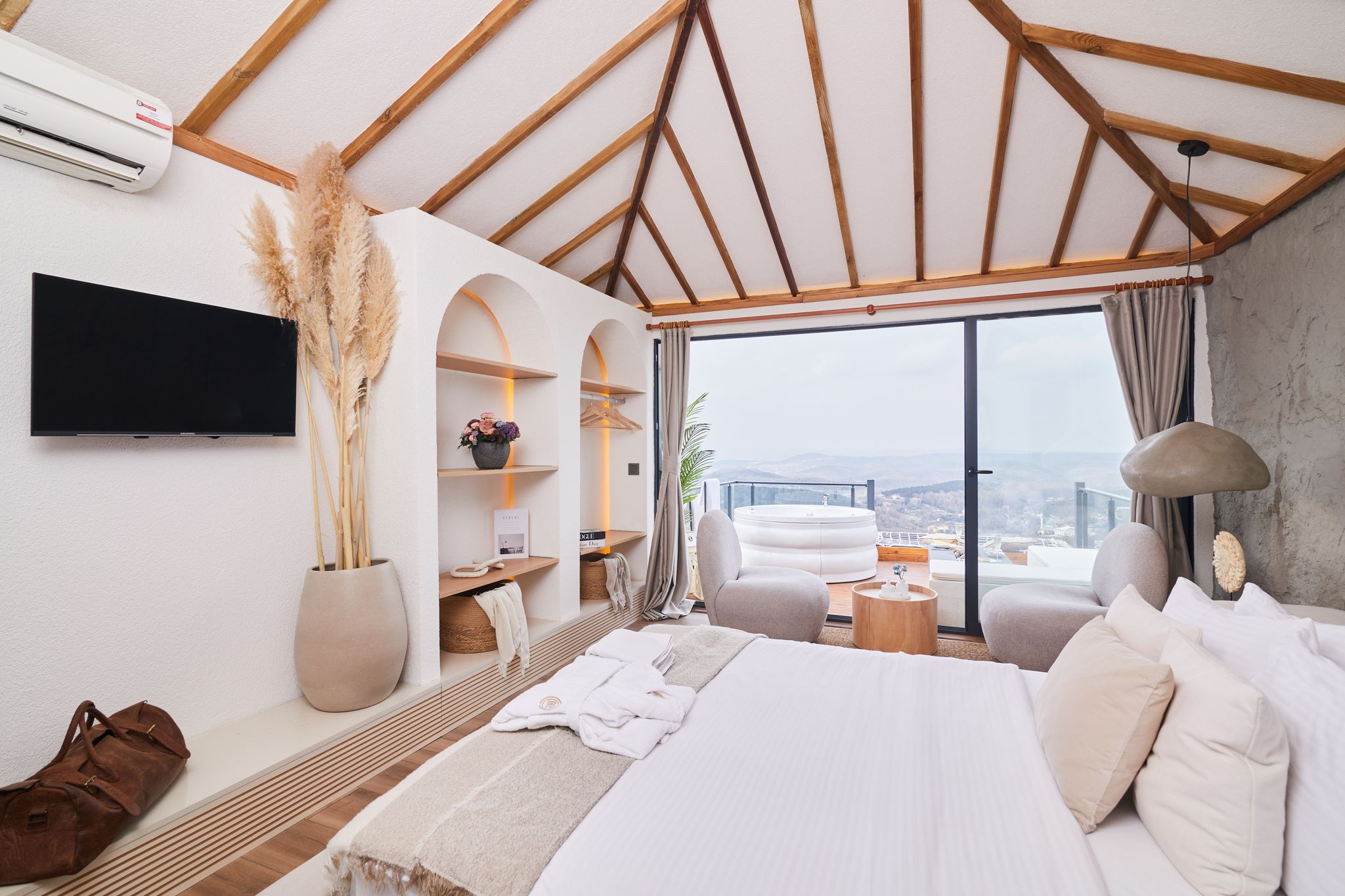 8 ve 9 numaralı odalarımız, modern ve zarif tasarımıyla göz doldururken, geniş yaşam alanları, açık balkonunda bulunan hamak, jakuzi ve ateş çukuru ile, lüks ve konforu bir arada arayan misafirlerimizi bekliyor.